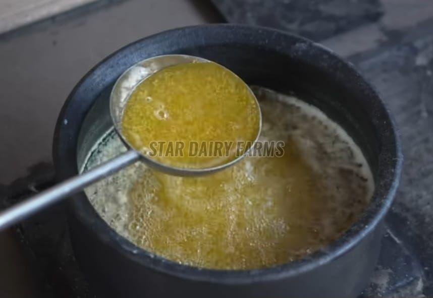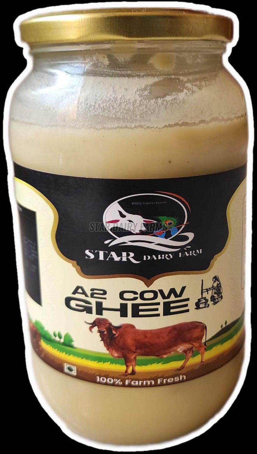 A2 cow ghee that is produced in our Star Dairy Farm is a natural dairy product made from the pure gir cow milk that produce A2 is prepared using traditional bilona method,where the whole milk is turned to curd,then the curd is slowly churned to extract butter and then simmered to ghee at a particular temperature.This process helps retain its rich aroma,grainy texture,and golden colour,